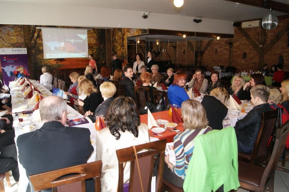W spotkaniu udział wzięły zarówno Kobiety prowadzące swój własny biznes jak również bezpośrednio zarządzające przedsiębiorstwami, a także przedstawicielki banków i placówek oświatowych. Lokalny samorząd reprezentowała m.in. Zastępca Burmistrza Miasta Białogard Pani Małgorzata Stachowiak. Głównym tematem spotkania była prezentacja projektu nt. "Transfer wiedzy w regionie poprzez rozwój sieci Współpracy" przedstawiona przez Prezesa Zachodniopomorskiego Stowarzyszenia Rozwoju Gospodarczego-SCP Pana Zbigniewa Plutę. Dodatkowo swoją ofertę zaprezentowały Nowe Studio Fitness dla Kobiet De Guays prowadzone przez Panią Agnieszkę Łapko. Pokaz tańca zumba cieszył się dużym zainteresowaniem. Wszystkie zaproszone Panie zaprezentowały swoje umiejętności taneczne na parkiecie. PAni Daria Smętek prowadząca Salon Kosmetologiczny przedstawiła ofertę zabiegów pielęgnacyjno-leczniczych, a także ufundowała dla Pań bony upominkowe na zabiegi. Tradycyjnie swoją ofertę przedstawiła także firma kosmetyczna Oriflame.